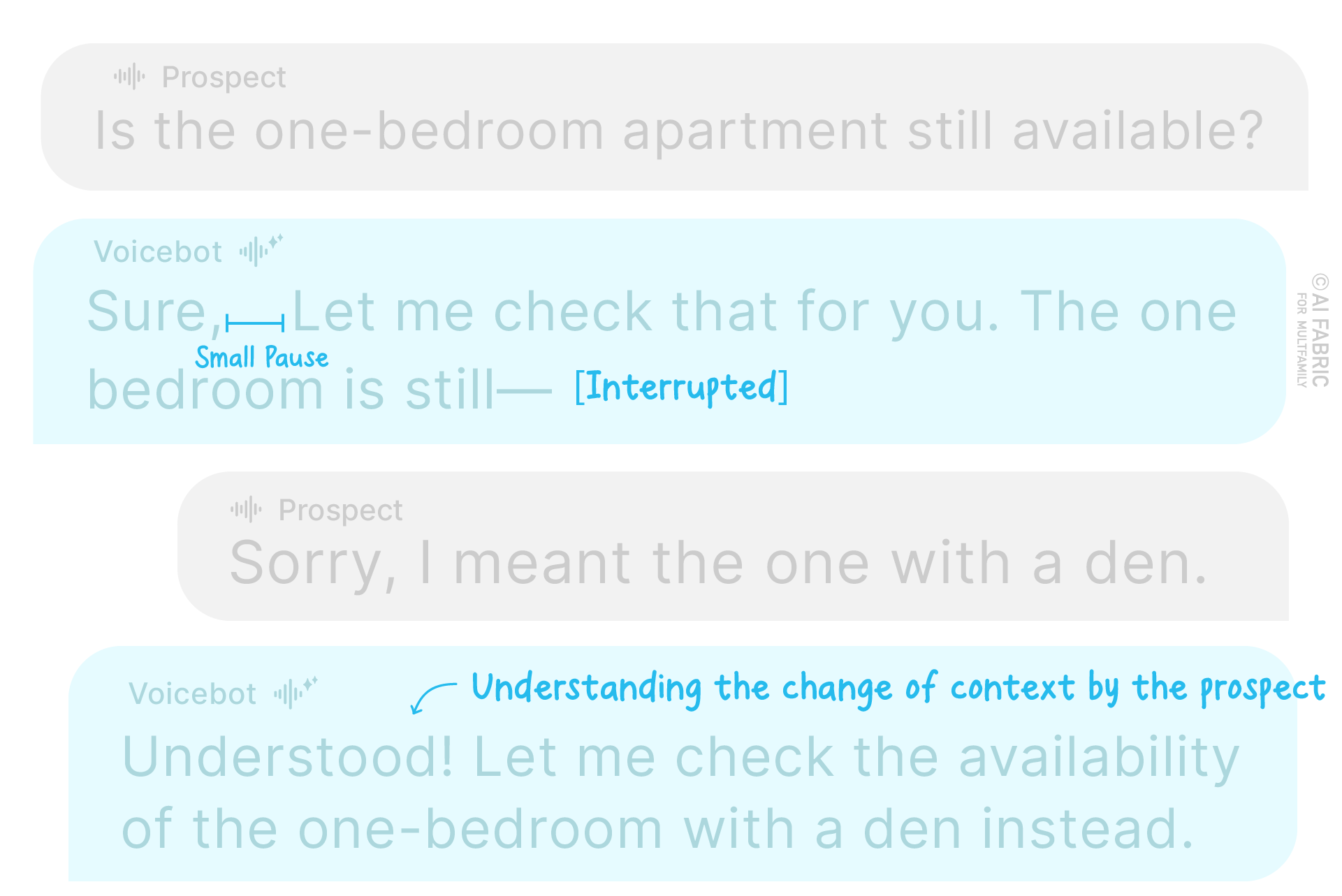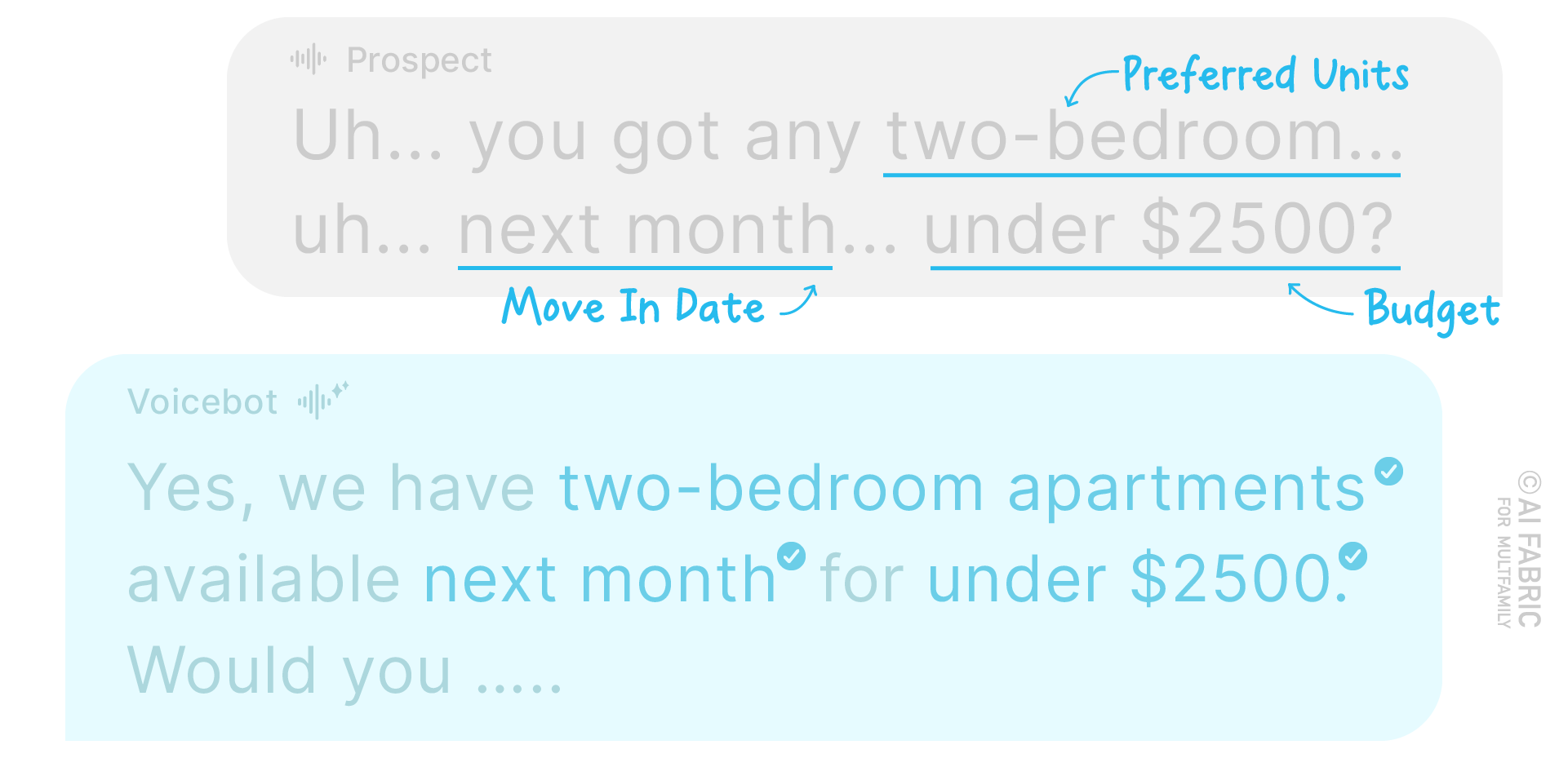 Let’s be real—your prospects and residents dont want to chat with a robotic voice and an AI voicebot that sounds stiff can drive your prospects away.